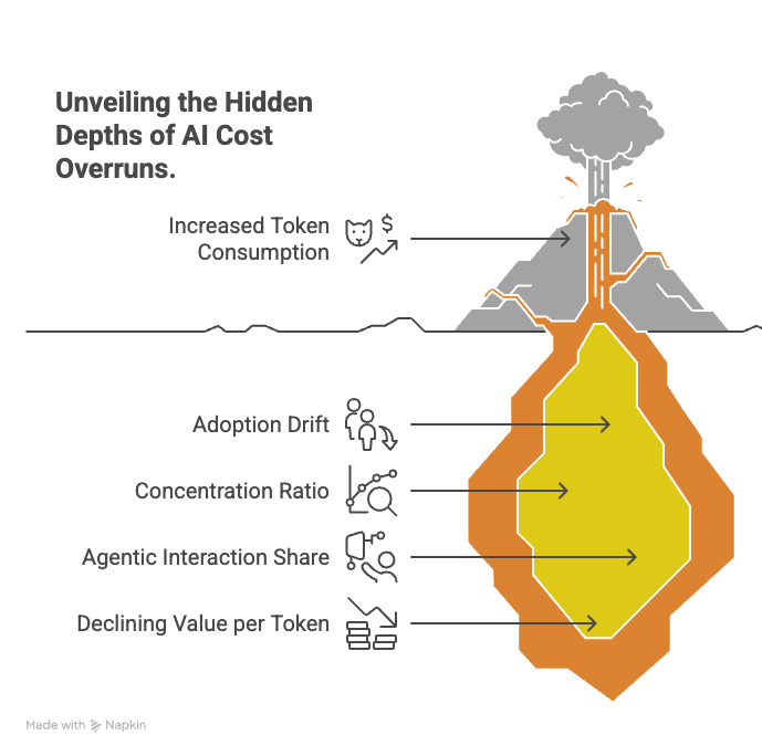 Product pressure. Every AI product team ships features to increase engagement. The feature team’s incentive is to drive usage up. The finance team’s assumption is that usage stays flat.